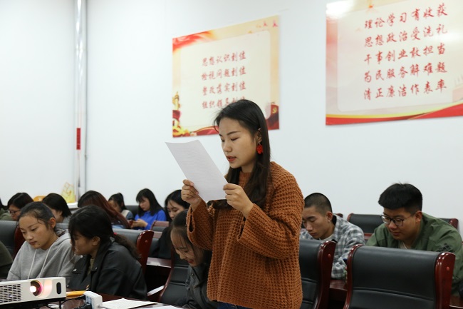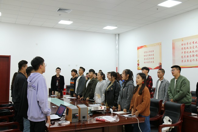 活动分为重温入团誓词、朗诵、交流互动三个环节。首先,2019级音乐表演专业学生陈运成,带领大家一起重温了入团誓词。接着,青年团员逐一朗诵《见证初心和使命的“十一书”》中的家书,其中大家共同朗读的《陈毅安的无字书》将此次活动推到了高潮,全体青年团员用慷慨激昂的声音,朗读者着催人奋进的事迹,激励着青年团员不断反省自己,鞭策自己,为实现自己的梦想和中华民族伟大复兴的中国梦而奋斗不息。最后,同学们用青春的激情唱响《我和我的祖国》,用歌声传达我的爱国心、爱国情、报国志。